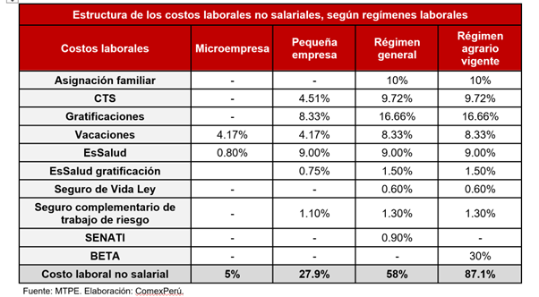 El director ejecutivo de ComexPerú, Jaime Dupuy, señaló que el Bono BETA, vigente desde el 2020, equivale al 30% de la remuneración mínima vital (RMV) y con ello, el régimen laboral del sector agrario, principal actividad económica generadora de empleo del Perú, tiene los sobrecostos más altos.