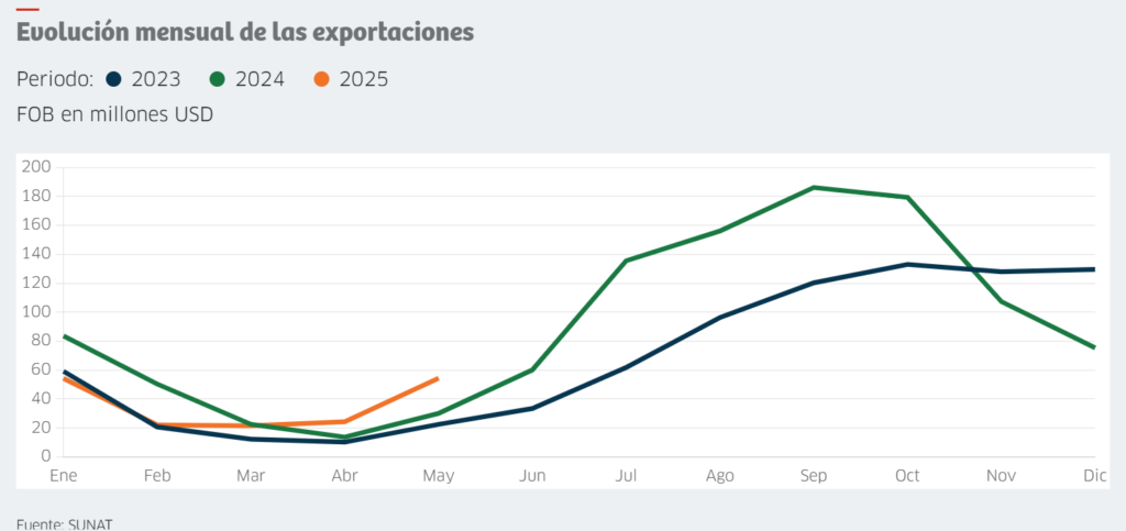 Este repunte durante la segunda mitad del 2025 se explica porque en los meses previos se negocian los embarques que salen de julio a diciembre.
